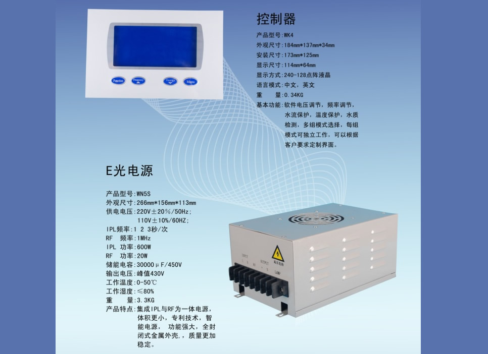voltage and frequency regulated by software; Water flow protection, temperature protection and water quality test; Modes to be choosed,Every mode could work seperately. Customize interface